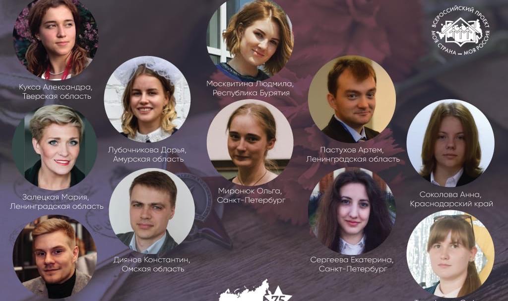 Победители были определены в рамках Всероссийского молодежного исторического форума «Моя страна. Моя история. Моя Победа», проводимого при поддержке Министерства науки и высшего образования Российской Федерации. Победителями номинации «Моя страна. Моя история. Моя Победа» (к 75-летию Победы в Великой Отечественной войне) стали 11 человек: • Даниил Грамотин из Тюменской области представил...