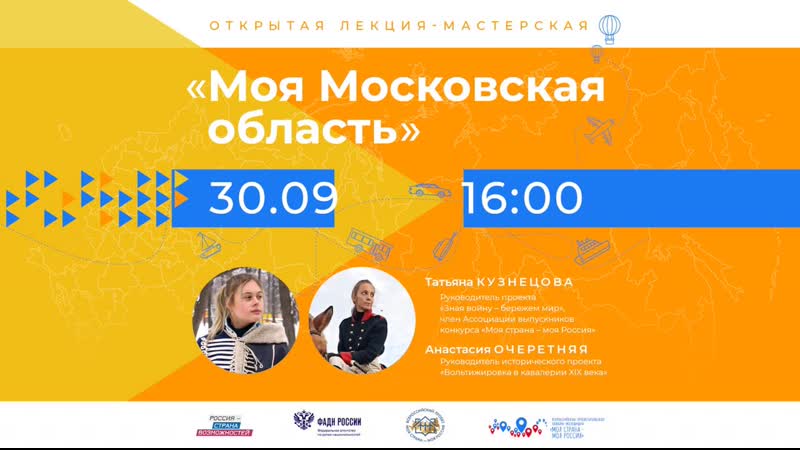 Сегодня, 30 сентября в 16:00, отправляемся в Московскую область! Онлайн-занятие проведут руководитель проекта «Зная войну – бережем мир», член Ассоциации выпускников конкурса «Моя страна – моя Россия» Татьяна Кузнецова и руководитель исторического проекта «Вольтижировка в кавалерии XIX века» Анастасия Очеретняя. Выпускница Конкурса Татьяна Кузнецова рассказала: «Московская область – очень важный...