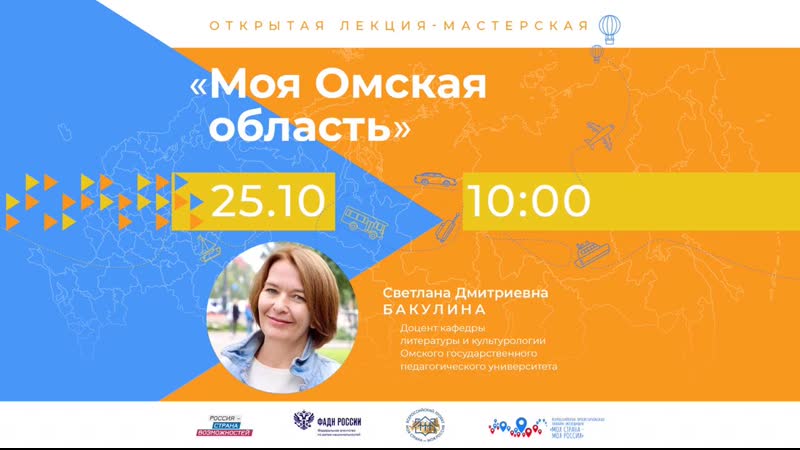 Сегодня, 25 октября в 10:00, нас встретит Омская область! Онлайн-занятие проведёт доцент кафедры литературы и культурологии Омского государственного педагогического университета Светлана Дмитриевна Бакулина. «Омск как административный центр региона и территория с трехвековой историей связывается как с эпохой развития сибирского казачества, так и с петровскими временами; здесь говорят о влиянии провинции...