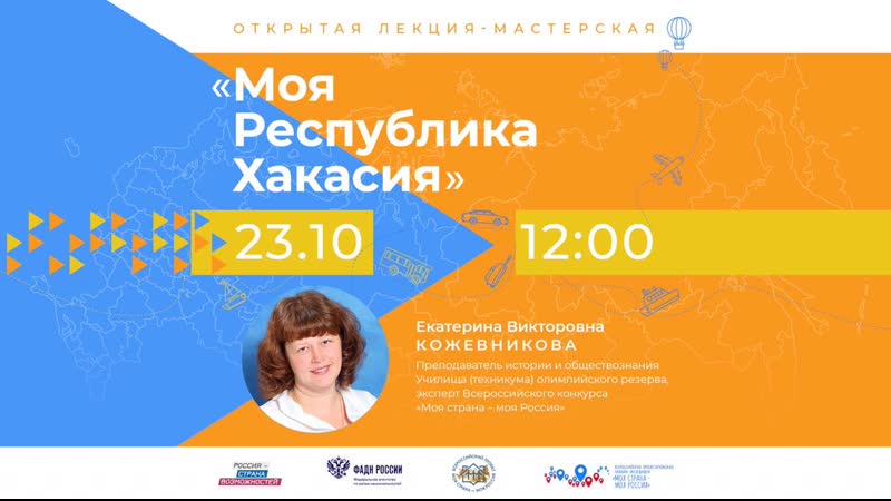 Сегодня, 23 октября в 12:00, нас встретит Республика Хакасия! Онлайн-занятие проведёт преподаватель истории и обществознания Училища (техникума) олимпийского резерва, эксперт Всероссийского конкурса «Моя страна – моя Россия» Екатерина Викторовна Кожевникова. «Республика Хакасия - удивительный регион, обладающий огромными возможностями для развития туризма. Величественные горы, кристально...