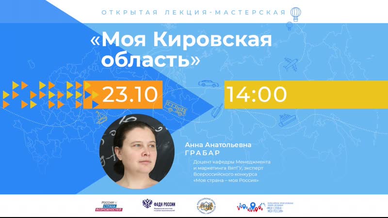 Сегодня, 23 октября в 14:00, нас встретит Кировская область! Онлайн-занятие проведёт доцент кафедры Менеджмента и маркетинга ВятГУ, эксперт Всероссийского конкурса «Моя страна – моя Россия» Анна Анатольевна Грабар. «Киров - региональный центр Кировской области. До 1934 года город назывался Вятка. А еще раньше Хлынов - самый восточный город, основанный во времена Древней Руси. Именно Вятка ассоциируется...
