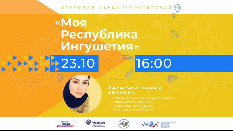 Сегодня, 23 октября в 16:00, отправляемся в Республику Ингушетия! Онлайн-занятие проведёт магистр Ингушского государственного университета, поэтесса, участница Всероссийского конкурса «Моя страна – моя Россия» Лариса Азмат-Гиреевна Евлоева. «Чтобы полюбить Ингушетию, хватит одного дня, а чтобы понять — может не хватить целой жизни... Такой он, самый молодой субъект Российской Федерации! Ингушский...