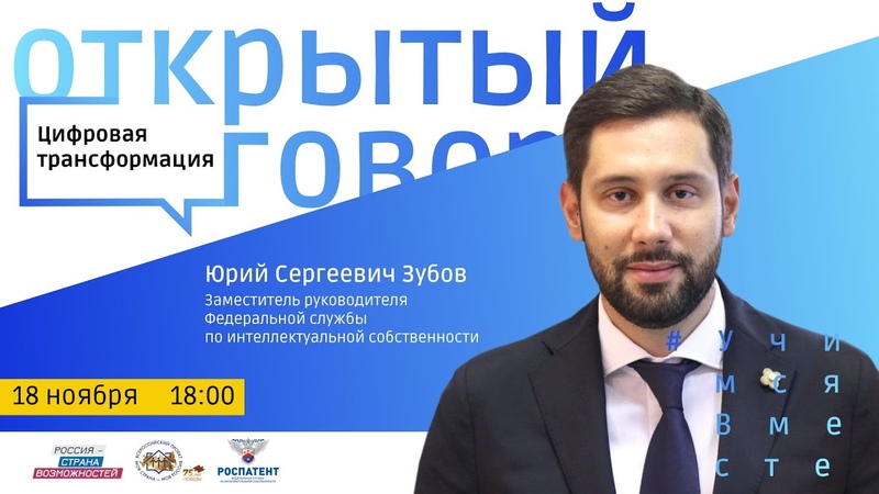Идеей цифровой трансформации охвачен весь мир. Слова «диджитал» и «онлайн» прочно и основательно закрепились в нашем лексиконе. 18 ноября в 18:00 обсудим тему в рамках #Открытого разговора с заместителем руководителя Федеральной службы по интеллектуальной собственности Юрием Зубовым. Встретимся в онлайн!
