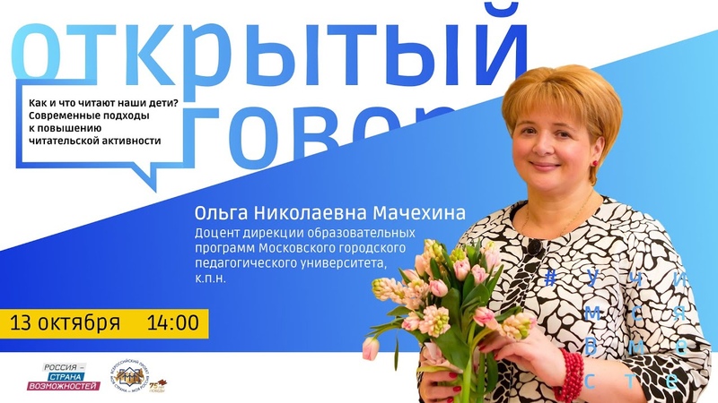 Не успели принять участие в сегодняшней встрече в прямом эфире? К нему всегда можно вернуться в нашем сообществе! #ОткрытыйРазговор с Ольгой Николаевной Мачехиной, кандидатом педагогических наук, доцентом дирекции образовательных программ Московского городского педагогического университета. Тема встречи: «Как и что читают наши дети? Современные подходы к повышению читательской активности»