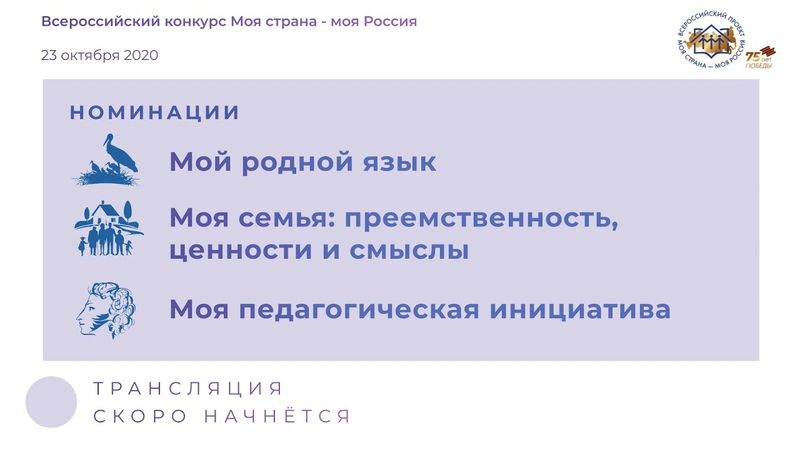 Стартует третий день очных защит проектов XVII Всероссийского конкурса «Моя страна - моя Россия» для участников в возрасте от 14 до 17 лет. Сегодня в 10:00 финалисты представят свои идеи в номинациях «Мой родной язык», «Моя семья: преемственность, ценности и смыслы» и «Моя педагогическая инициатива». Присоединиться к трансляции финала можно по ссылке: https://youtu.be/Zi3w5mF1RPw