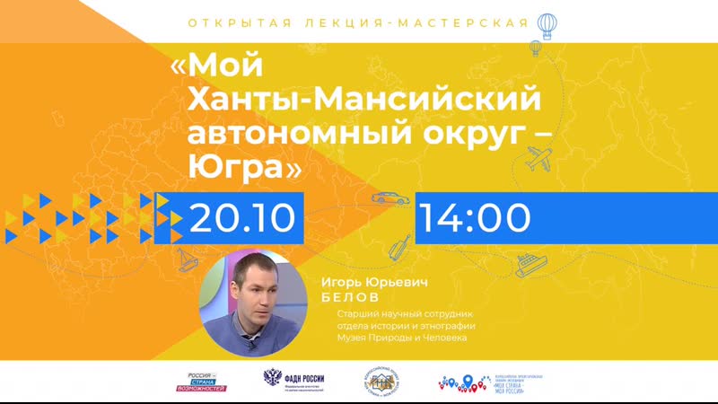 Сегодня, 20 октября в 14:00, отправляемся в Ханты-Мансийский автономный округ-Югра! Онлайн-занятие проведёт старший научный сотрудник отдела истории и этнографии Музея Природы и Человека Игорь Белов. «Онлайн-занятие даст возможность познакомиться с историей Югры с древнейших эпох до современности. Участники лекции совершат виртуальную прогулку по залам экспозиции музея Природы и Человека, где увидят...