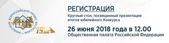 26 июня на площадке Общественной палаты Российской Федерации пройдет круглый стол, посвященный презентации итогов юбилейного Всероссийского конкурса молодежных авторских проектов и проектов в сфере образования, направленных на социально-экономическое развитие российских территорий «Моя страна – моя Россия» (далее - Конкурс). В рамках работы круглого стола его участники подведут итоги Конкурса...