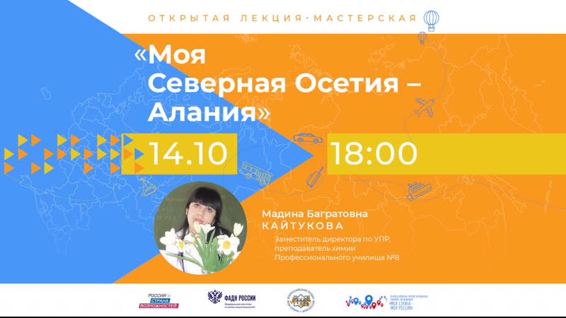 Сегодня, 14 октября в 18:00, отправляемся в Северную Осетию-Аланию! Онлайн-занятие проведёт заместитель директора по УПР, преподаватель химии Профессионального училища №8, эксперт Всероссийского конкурса «Моя страна – моя Россия» Мадина Кайтукова. «Северная Осетия-Алания – это многообразие растительного мира, горы и высокогорные леса, редкие животные и птицы. Не раз являлась экспертом и участником...