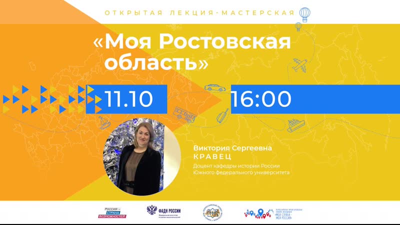 Сегодня, 11 октября в 16:00, нас встретит Ростовская область! Онлайн-занятие проведёт доцент кафедры истории России Южного федерального университета Виктория Сергеевна Кравец. «Донские степи, величественный Дон-батюшка, старинные казачьи станицы – все это Ростовская область – родина Донского Казачества. Особенность области – в ее людях. Подвиги во время войны, архитектурные памятники, золотые медали...