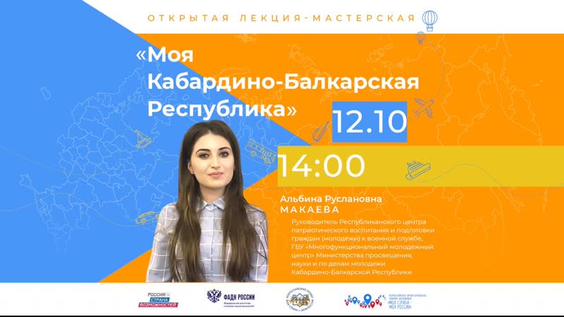 Сегодня, 12 октября в 14:00, отправляемся в Кабардино-Балкарскую Республику! Онлайн-занятие проведёт руководитель Республиканского центра патриотического воспитания и подготовки граждан (молодёжи) к военной службе,ГБУ «Многофункциональный молодежный центр» Министерства просвещения, науки и по делам молодежи Кабардино-Балкарской Республики, эксперт Всероссийского конкурса «Моя страна – моя...