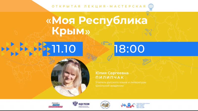 Сегодня, 11 октября в 18:00, нас встретит Республика Крым! Онлайн-занятие проведёт учитель русского языка и литературы Школьной академии Юлия Сергеевна Пилипчак. «Главная особенность Крыма - это его пейзажи, сочетающие в себе горный и степной климат, многовековое богатство культур народов, проживающих здесь. Решила принять участие в Экспедиции, так как считаю, что быть педагогом России - это гордость,...
